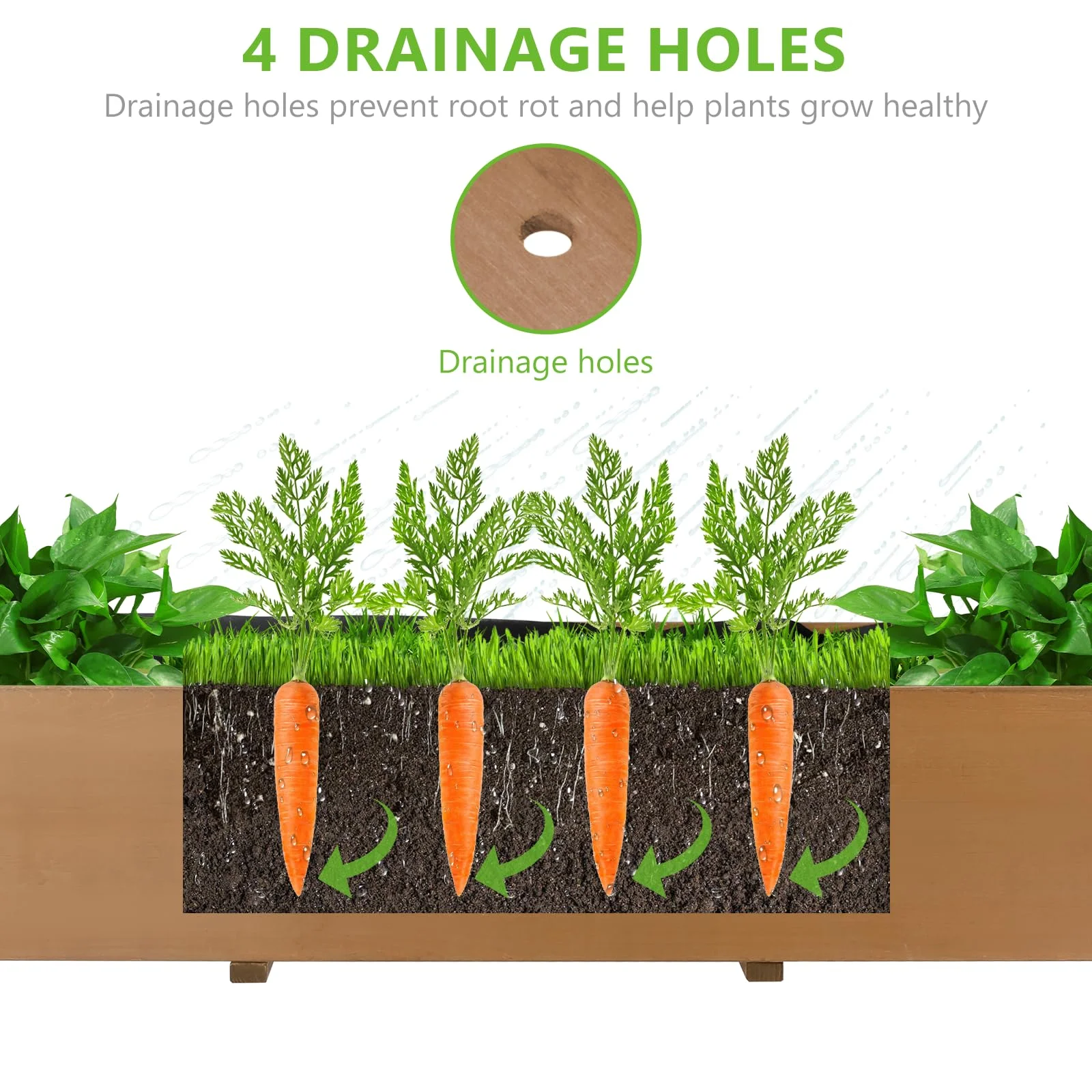 - 【DRAINAGE SYSTEM】:Equipped with 4 pre-drilled drainage holes, this elevated garden bed efficiently prevents water accumulation, promoting healthier root growth and better plant hydration.