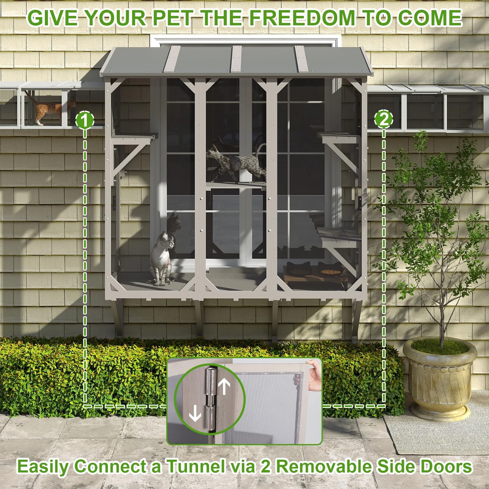 • EXPANDABLE EASY ACCESS & MULTI-CAT FRIENDLY: This catio window includes 3 large doors for easy entry and 2 removable small doors for seamless tunnel connection. Lift off a small door to attach an external cat tunnel, creating an engaging play space that reduces boredom and encourages activity.