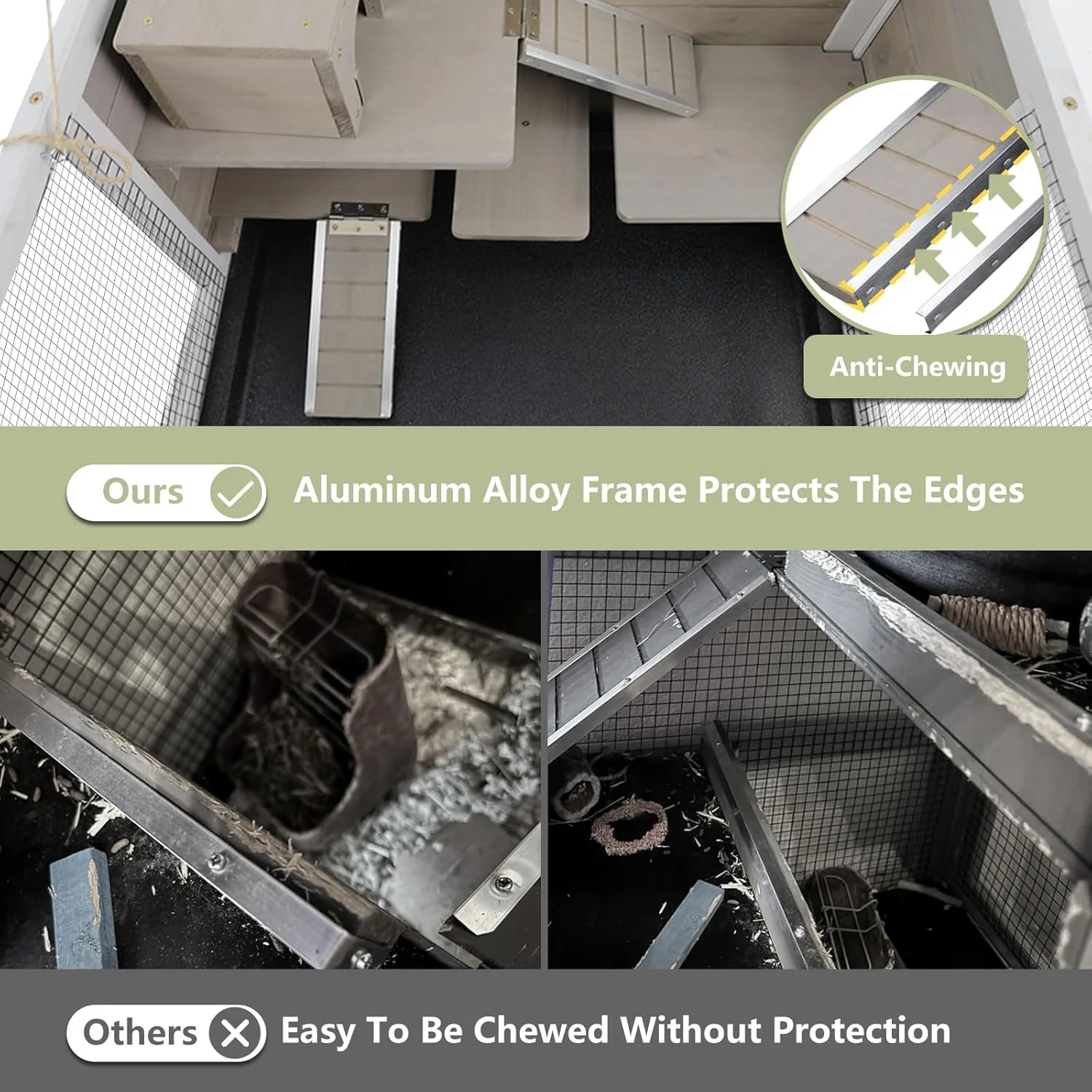 - High-quality Cage: The guinea pig cages made of 100% natural fir wood is sturdy and durable. The spacious bottom shelf is used to keep pet supplies, providing convenience to use them at any time. Rubber pads added to the 4 legs can protect your floor. Deepth with 1.38″ of pull out tray is not easy to leak,the feature of easy to clean can protect your indoor environment. Simple style of the animal cage can suit for any indoor decoration style.