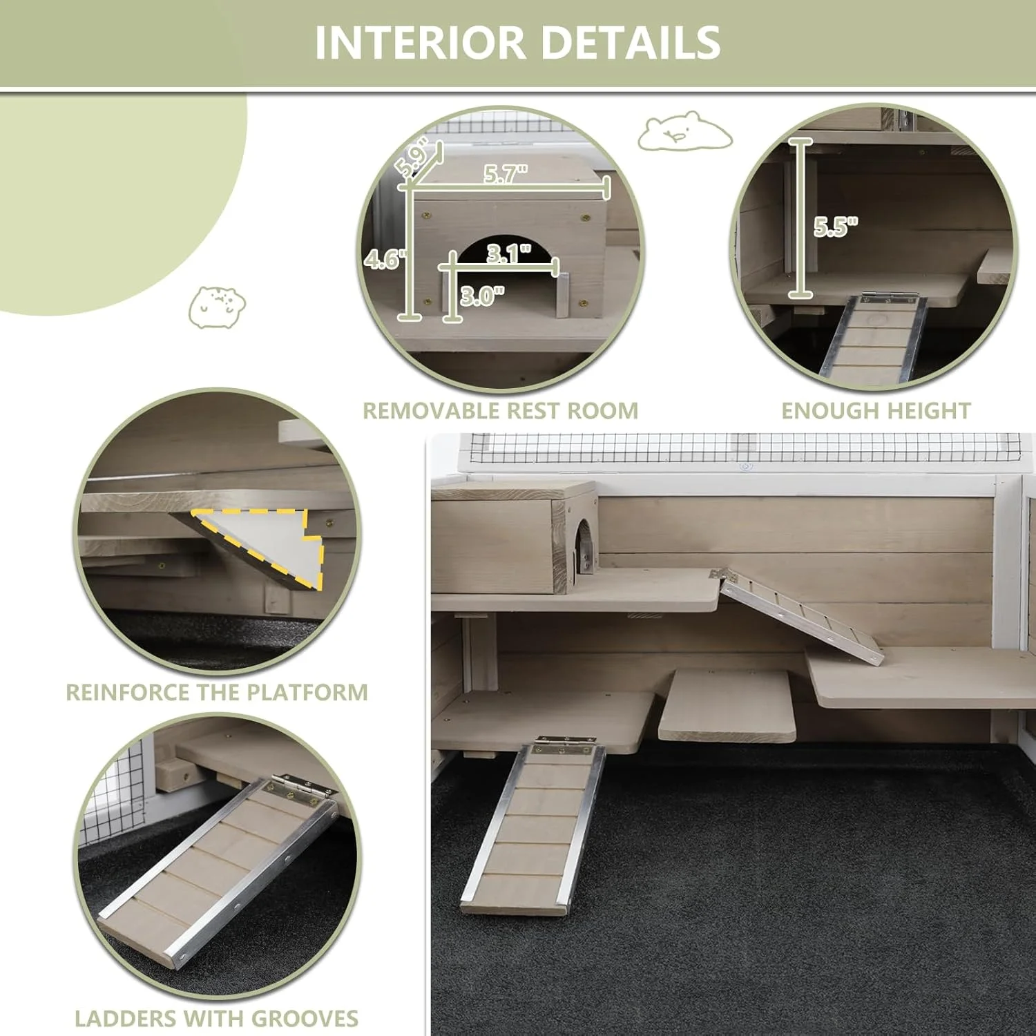 Gowoodhut PET39 Hamster Cages Wooden Guinea Pig Cage Indoor with Hideout for Small Animals, Gray
