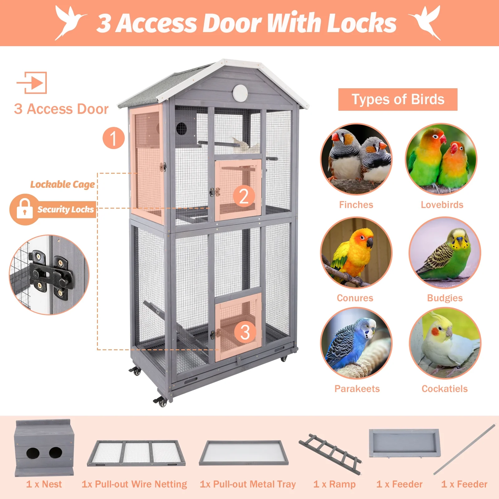Gowoodhut PET51 Outdoor Bird Cage Large, Wooden Flight Aviary with Perches, Nest Habitat