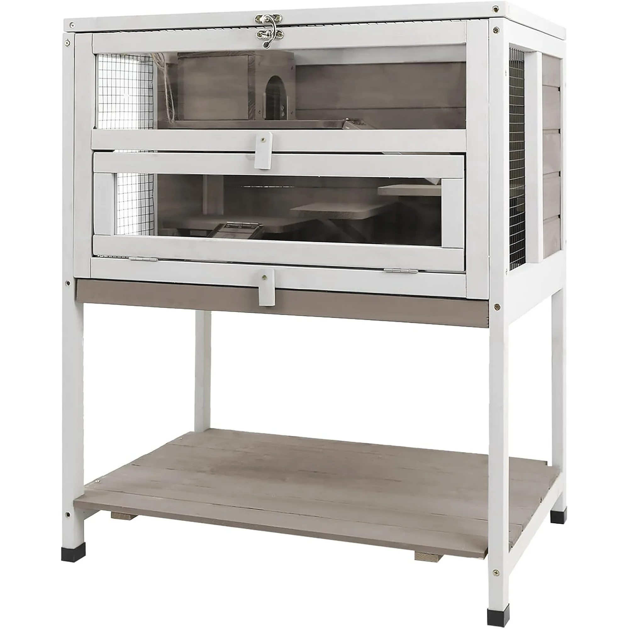 Gowoodhut PET39 Hamster Cages Wooden Guinea Pig Cage Indoor with Hideout for Small Animals, Gray