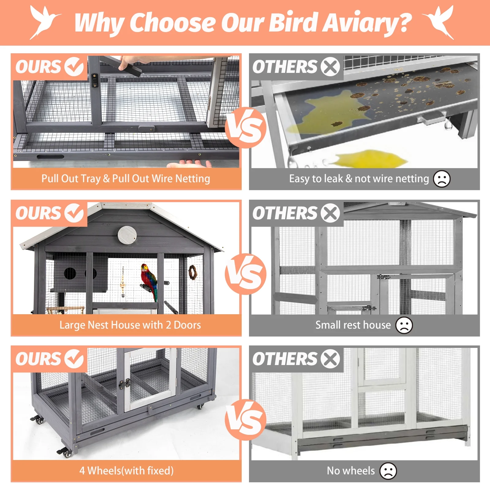 Gowoodhut PET51 Outdoor Bird Cage Large, Wooden Flight Aviary with Perches, Nest Habitat