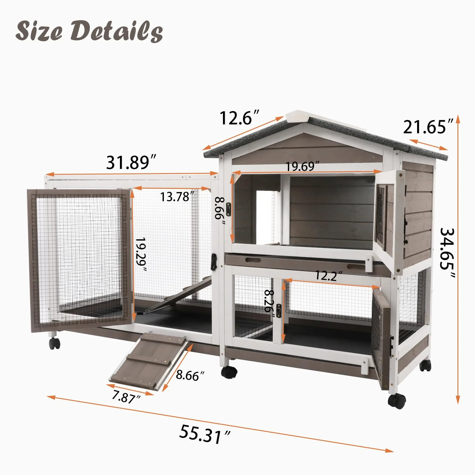- Ample Space: The rest area and activity area provide enough space for your pets to play and sleep. Ramps with timber ridges of the bunny cages for rabbits indoor can protect the rabbit from slipping back. The outside ramps of the rabbit house is convenient for pets to enter and exit. The 4 doors with metal latches can prevent your friends from escaping.